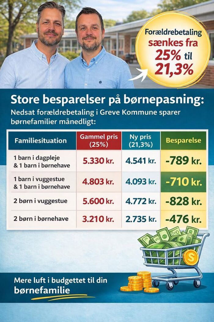 Det betyder kort sagt, at det bliver billigere at være børnefamilie i Greve.